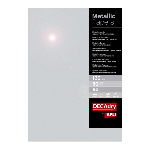 Apli Pack de 50 Hojas de Papel Metalizado – Ideal para Impresiones Especiales – Compatible con Impresoras Inkjet, Laser y Fotocopiadoras – Color Plata