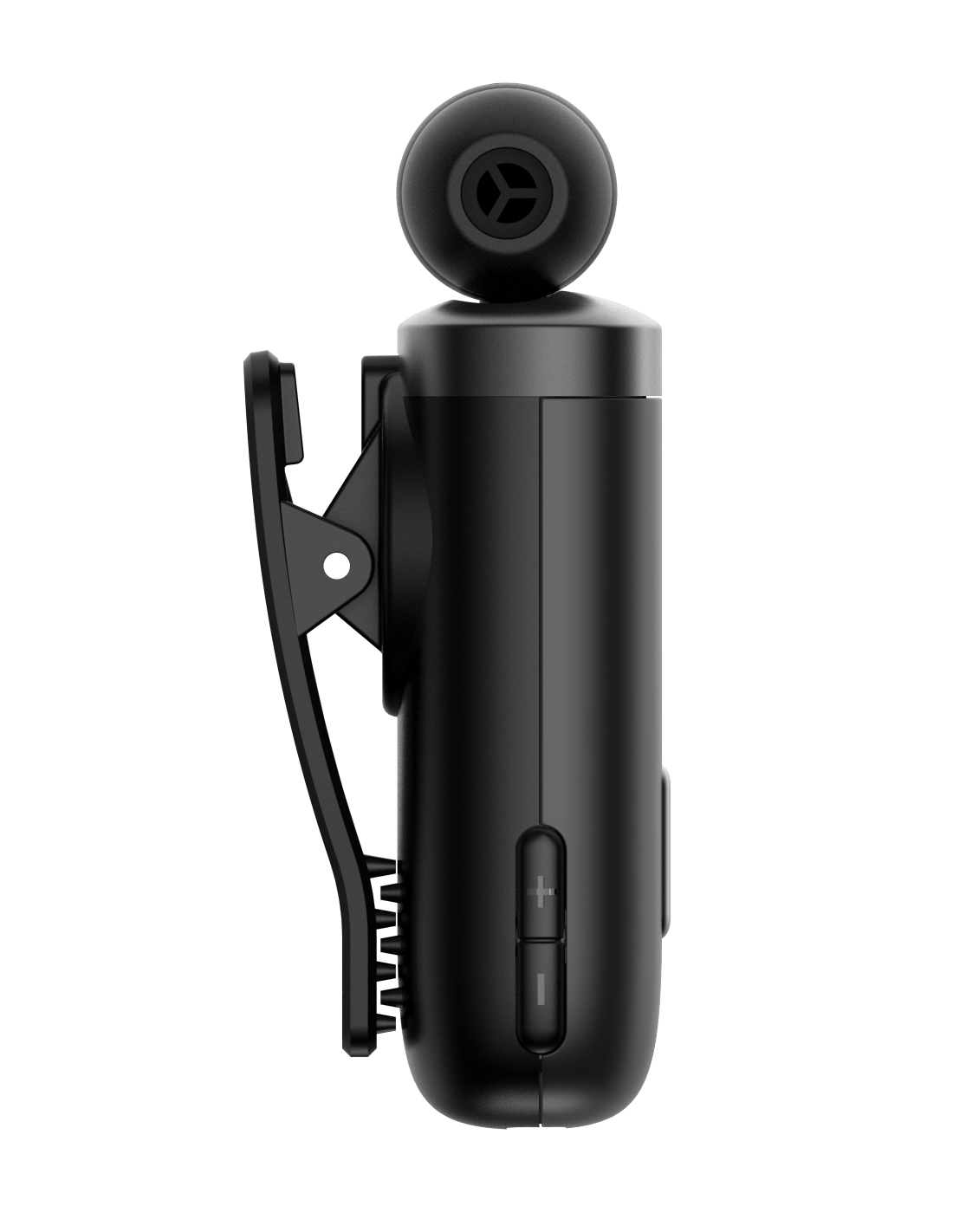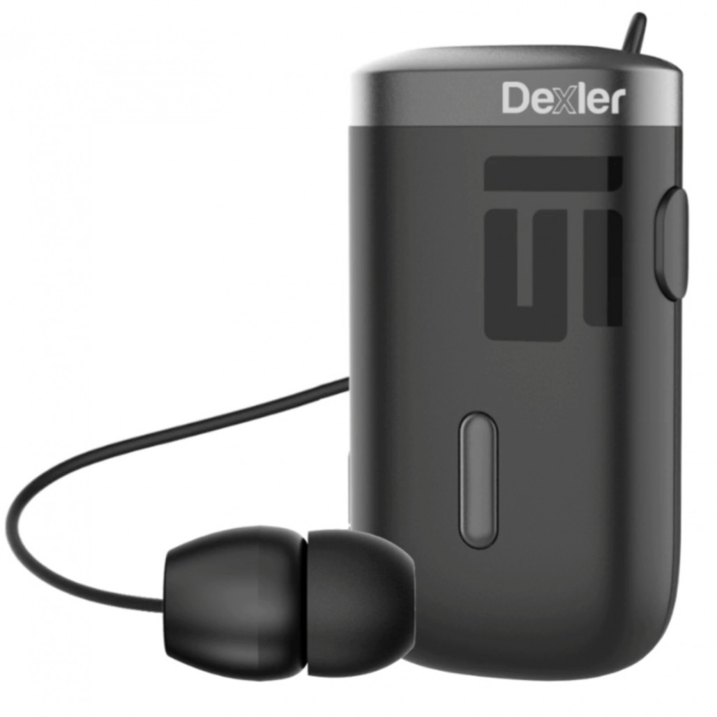 Auricular con cable retráctil y pinza de sujección a la ropa que permite atender llamadas sin necesidad de usar/tocar el teléfono al que está conectado por bluetooth.