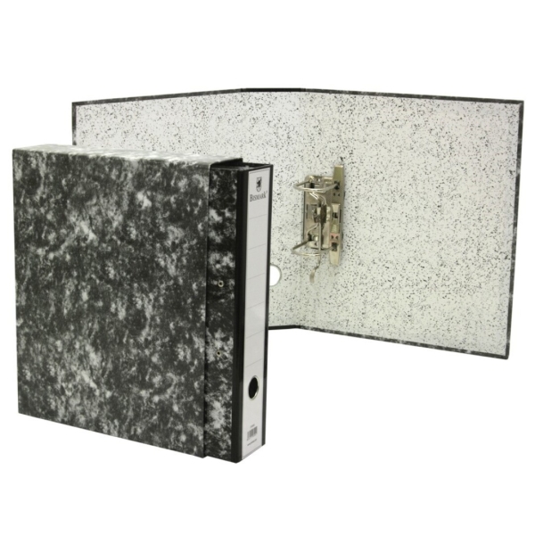 Bismark Archivador A-Z Jaspeado Folio con Funda – Lomo 75mm – Carton Forrado – Tarjetero en el Lomo – Mecanismo de Palanca – Color Negro Jaspeado