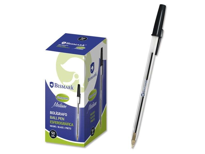 Bismark Boligrafo de Bola – Punta Redonda – Capuchon y Tapon del Color de la Tinta – Color Negro