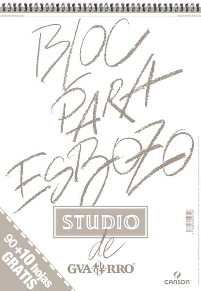 El Bloc Studio de Canson® Guarro® es un papel para esbozo de blanco natural con grano ligero de 90 gramos para un mejor agarre de la gráfica y otras técnicas secas.