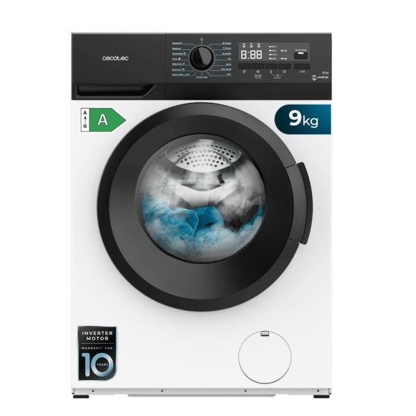 Cecotec Bolero dresscode 9300 Inverter A Lavadora de Carga Frontal – Capacidad 9kg – Velocidad 1400rpm – Seguro Infantil – Display LED – Motor Inverter – 15 Programas – Color Blanco y Negro