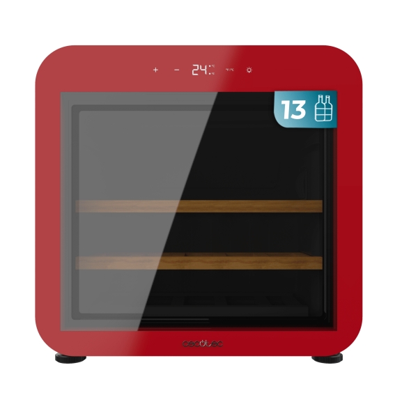 Cecotec Bolero GrandSommelier Origin 13 Red Vinoteca para 13 Botellas – Luz LED – Temperatura Regulable – Vidrio Templado – Estilo Retro – Compresor Integrado – 49.5×49.5x45cm – Color Rojo