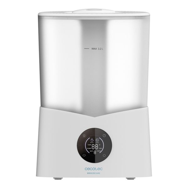 Cecotec BreezeCare 2600 Light Smart Humidificador de Aire – 25W – Deposito 3.2L – 260ml/h – Cobertura hasta 40m2 – Tactil – 3 Velocidades – Temporizador – LED – 19.8x18x29cm – Color Blanco