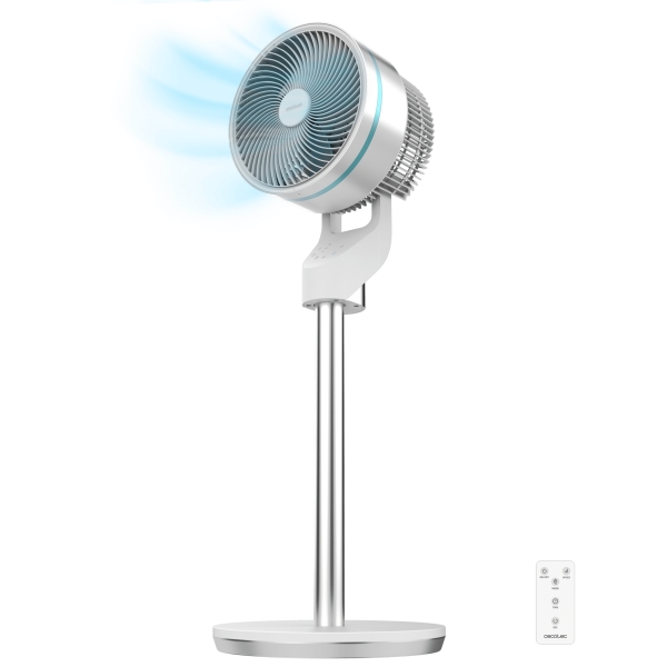 Cecotec EnergySilence 1000 Cyclone Smart Ventilador de Pie – 60W – Diametro 9″ – 3 Velocidades – Temporizador – Control Tactil y Remoto – Oscilacion Automatica – Inclinacion Ajustable – Color Blanco