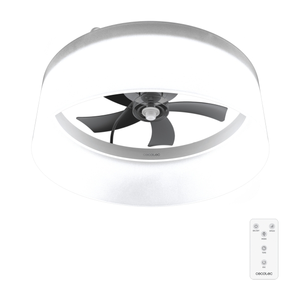 Cecotec EnergySilence LampAero 650 White Design Ventilador de Techo con Luz LED – 20W – Tulipa de Tela – 3 Tonos LED – Temporizador – 6 Velocidades – Modo Invierno – Color Blanco y Negro