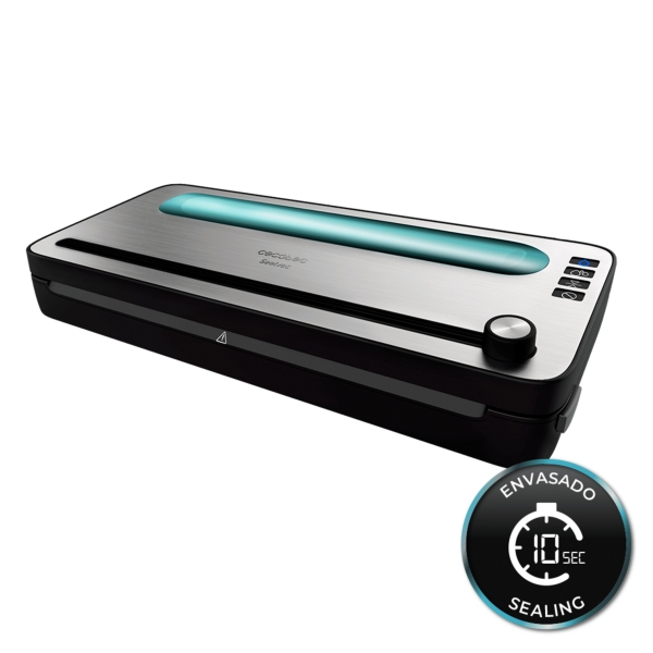 Envasadora de alimentos al vacío Cecotec FoodCare SealVac 120 SteelCut, diseñada para conservar tus alimentos en perfectas condiciones durante más tiempo. Con una potencia de 120 W y un sistema de envasado rápido en solo 10 segundos, te permite ahorrar tiempo y mantener la frescura de tus productos de manera eficiente.