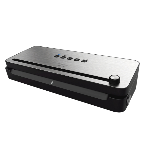 Cecotec FoodCare SealVac 140 SteelCut Envasadora al Vacio – 140W – Presion 0.75bar – Luz LED – Silencioso – Acero Inoxidable – Admite Bolsas Genericas – Funcion Vacio para Botes – Color Negro y Plateado