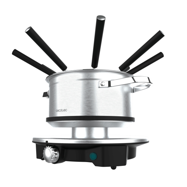 Cecotec Fun GourmetFondue Advance Fondue Electrica – 1500W – Acero Inoxidable – Termostato – Capacidad de 1.7L – 8 Tenedores – Olla Antiadherente – Apta para Lavavajillas – Tapa Antisalpicaduras