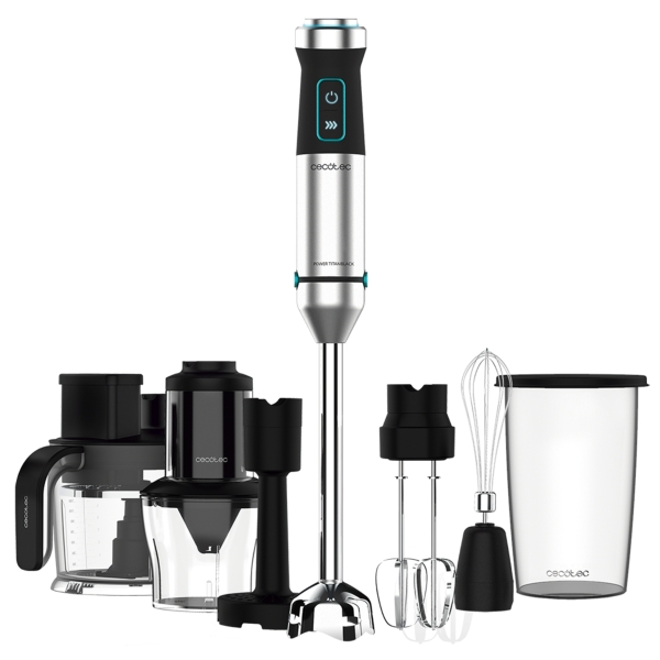 Cecotec Power TitanBlack 1500 XL TotalMix Batidora de Mano – 1500W – Cuchillas de Titanio – Campana Antisalpicaduras – Velocidad Ajustable – Incluye Accesorios Variados – Funcion Turbo – Color Negro