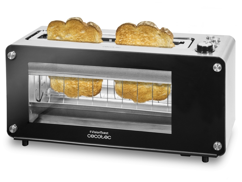 Cecotec VisionToast Tostadora de Ranura Larga – 1260W – Ventana de Cristal – Ranura XL Extra Ancha – 7 Niveles de Tostado – 3 Funciones Preconfiguradas – Acabado en Acero Inoxidable – Color Negro