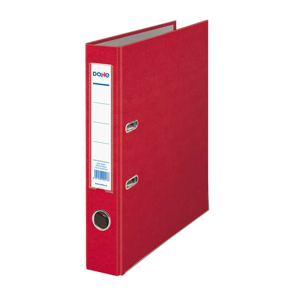 Dohe Archivador de Palanca A4 – Lomo de 45mm – Con Ollao, Rado y Tarjetero en el Lomo – Carton Forrado con Polipropileno – Cantoneras Metalicas – Color Rojo