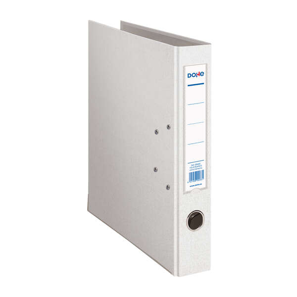 Dohe Archivador de Palanca Folio – Lomo de 45mm – Con Ollao, Rado y Tarjetero en el Lomo – Carton Forrado con Polipropileno – Cantoneras Metalicas – Color Blanco