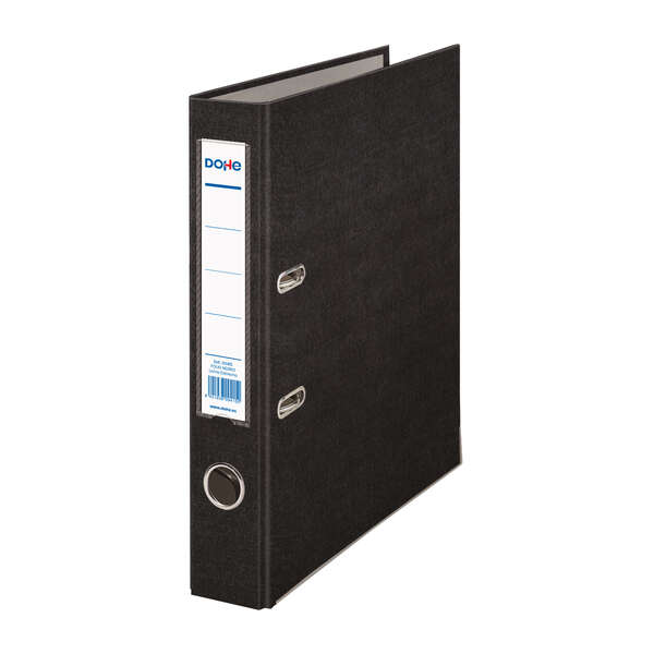 Dohe Archivador de Palanca Folio – Lomo de 45mm – Con Ollao, Rado y Tarjetero en el Lomo – Carton Forrado con Polipropileno – Cantoneras Metalicas – Color Negro
