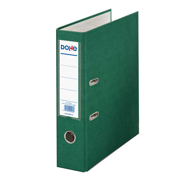 Dohe Archivador de Palanca Tamaño A4 – Lomo Ancho 70mm – Ollao, Rado y Tarjetero en el Lomo – Carton Forrado con Polipropileno – Cantoneras Metalicas – Color Verde