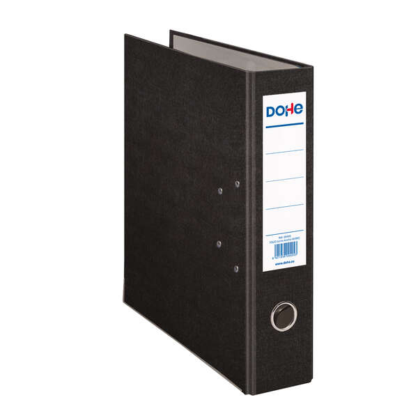 Dohe Archivador de Palanca Tamaño Folio – Lomo Ancho 70mm – Ollao, Rado y Tarjetero en el Lomo – Carton Forrado con Polipropileno – Cantoneras Metalicas – Color Negro