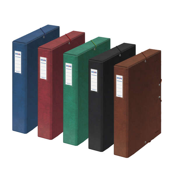 Dohe Caja de Proyectos Lomo 5cm – Tarjetero en Lomo – Medidas 245x350x50mm – Cierre con Gomas Elasticas – Carton Forrado con Papel Impreso y Plastificado – Colores Surtidos
