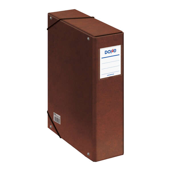 Dohe Caja para Proyectos Lomo 9cm – Carton Forrado con Papel Impreso y Plastificado – Cierre con Gomas – Color Cuero