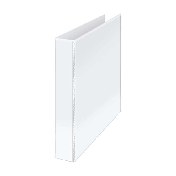 Carpetas en cartón forrado con PVC blanco en tamaño Din A-4. Con bolsa de plástico transparente en el lomo y portada para personalización. Mecanismo de anillas mixtas.