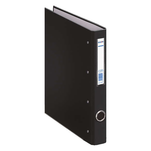 Dohe Carpeta de 4 Anillas Mixtas 25mm Folio – Medidas 285x350x45mm – Ollao y Tarjetero en Lomo – Carton Forrado con Polipropileno – Color Negro