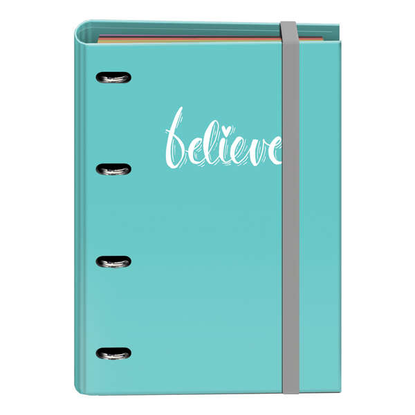 Dohe Carpeta Recambio Tamaño A4 – 4 Anillas Mixtas de 35mm – Cierre de Goma Elastica – Recambio de 100 Hojas de 90gr – Cuadricula de 5mm con Banda de Color – 4 Separadores – Sobre Velcro de Polipropileno