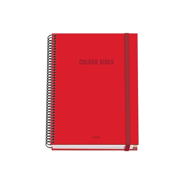 Dohe Colour Vives Cuaderno Espiral A5 100 Hojas Cuadricula 5mm – Tapa Dura Impresa a todo Color y Plastificada en Brillo – Bandas de Color – Cierre de Goma – Color Rojo