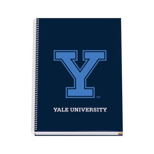 Cuaderno en espiral de tapa dura tamaño A4 ( 228 x 300 mm. Cubierta en cartón forrado con papel impreso a todo color y plastificado brillo. Guardas impresas. Cuaderno con espiral metálico color Blanco. Interior de 100 hojas en papel offset de 90 gramos microperforadas, con taladros y cuadrícula de 5 mm con banda de color. Con certificado FSC Mixto
