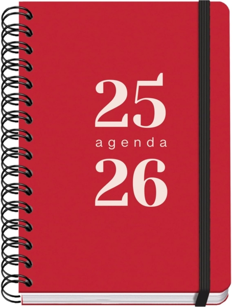 Dohe Grammar Agenda Escolar 25/26 Espiral A5 – Dia Pagina – Papel 80g/m2 – Cubierta de Polipropileno – Cierre de Goma Elastica – Color Rojo