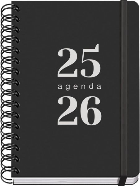 Dohe Grammar Agenda Escolar 25/26 Espiral A6 – Dia Pagina – Papel 80g/m2 – Cubierta de Polipropileno – Cierre de Goma Elastica – Color Negro