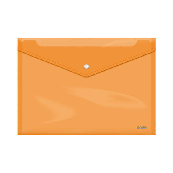 Dohe Sobre Portadocumentos Folio+ – Cierre de Broche – Polipropileno Cristal Transparente 150 Micras – Color Naranja