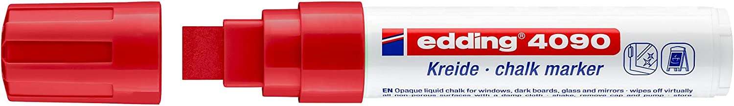 Edding 4090 Rotulador de Tiza Liquida – Punta Biselada – Trazo entre 4 y 15mm – Olor Neutro – Color Rojo