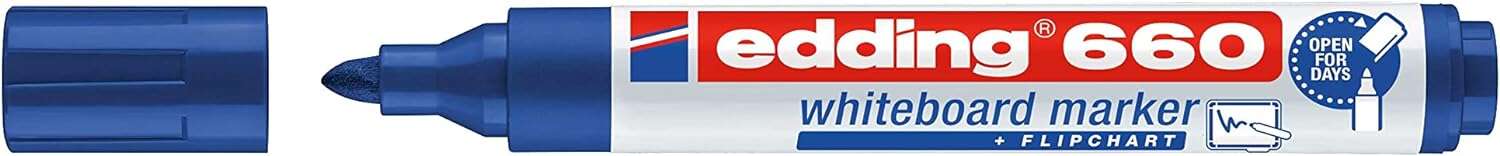 Edding 660 Rotulador para Pizarra Blanca – Punta Redonda – Trazo entre 1.5 y 3 mm. – Tinta Pigmentada – Recargable – Borrable en Seco – Color Azul