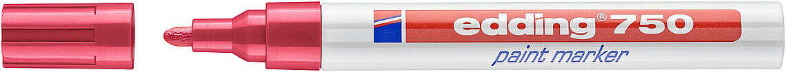 Los colores amarillo, naranja, marrón, violeta, rosa, azul claro, blanco y plata son aún visibles hasta 1000 °C. El color blanco ha sido recomendado por Lufthansa Technik. Artículo disponible en 14 colores distintos. Los colores marrón, violeta, rosa, azul claro y cobre están disponibles en otro diseño distinto con la misma calidad de tinta (véase edding 750 marcador de tinta opaca brillante).