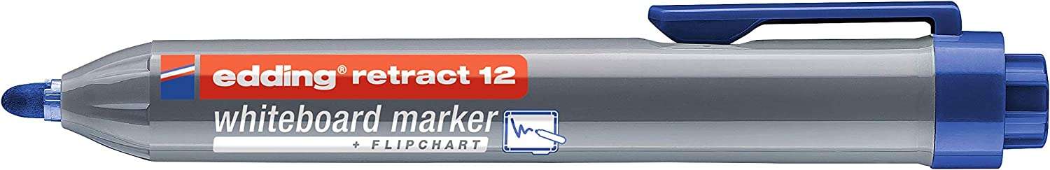 Edding Retract 12 Rotulador para Pizarra Blanca Retractil – Punta Redonda – Trazo entre 1.5 y 3mm – Recargable – Secado Rapido – Color Azul