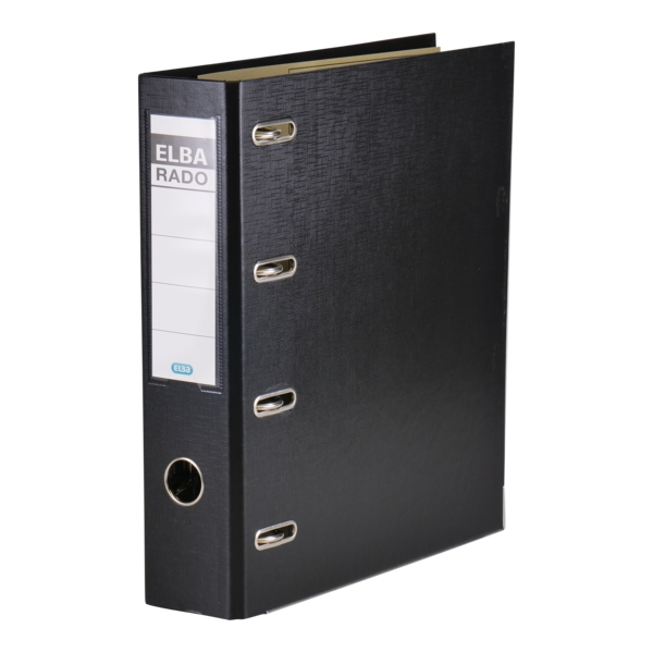 El archivador Elba Palanca Rado Plast A4 cuenta con un doble mecanismo de palanca para una mayor sujeción de los documentos. Tiene un lomo de 75mm de ancho y está fabricado en PVC resistente de color negro. Perfecto para organizar y almacenar documentos de tamaño A4 de forma segura y ordenada.