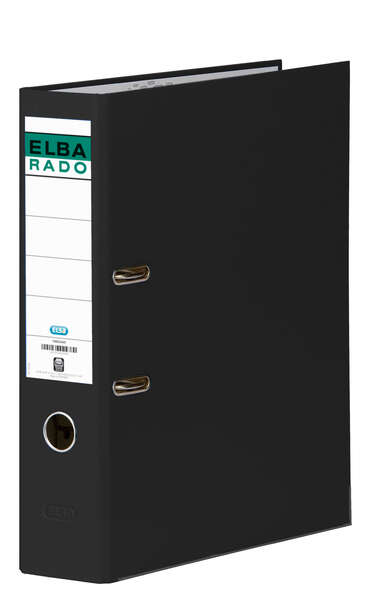 El Elba Archivador Palanca Rado Chic A4 tiene un lomo de 80mm y está forrado en PVC en su exterior. En su interior, cuenta con papel negro para una mayor protección de los documentos.