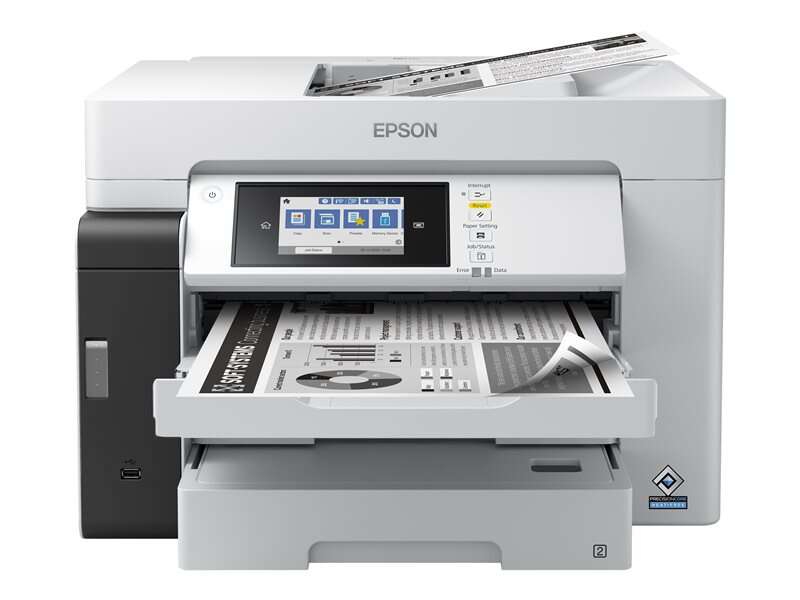 La ET-M16680 ofrece un tiempo de impresión de la primera página de solo 5,5 segundos y velocidades de impresión de hasta 25 páginas por minuto. El alimentador automático de documentos puede escanear hasta 26 imágenes por minuto.