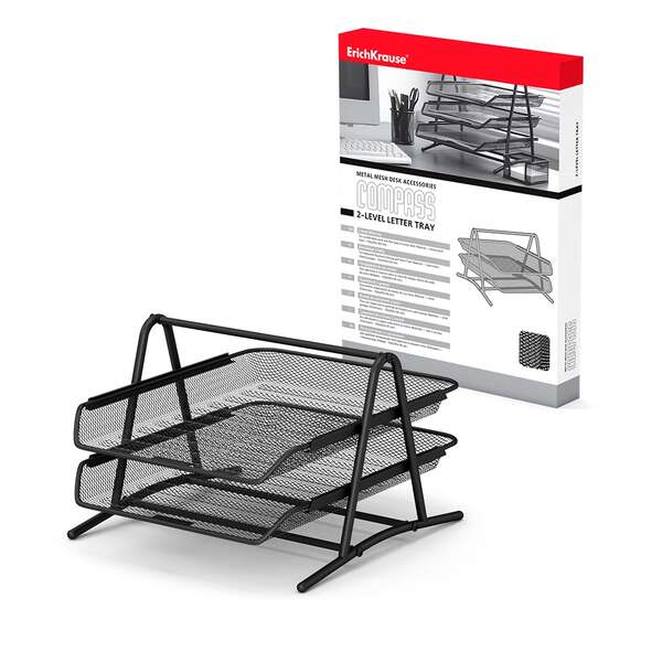 Erichkrause Compass – Bandeja para Documentos de 2 Niveles – Mecanismo de Riel – Acero Inoxidable – Color Negro