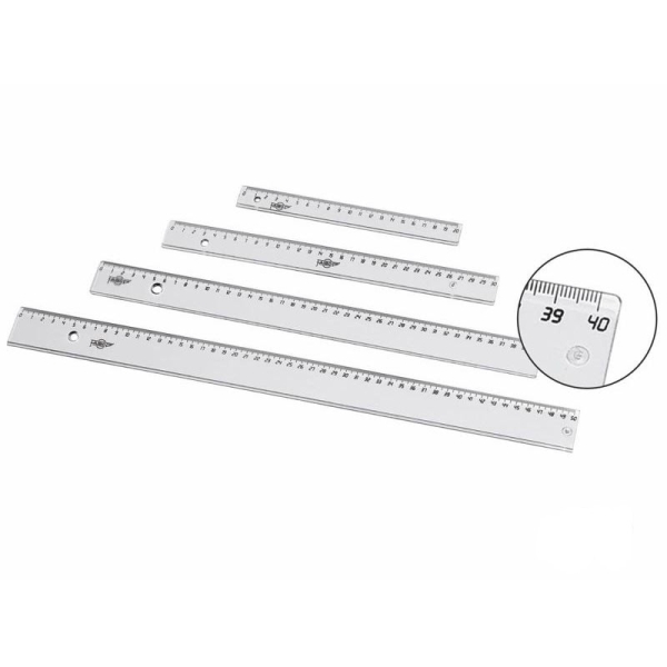 Faibo Regla Escolar Graduada de 20cm – Biselada y Reborde para Tinta – Transparente