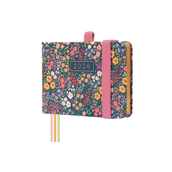 Finocam Minimal Design Agenda – Anual 2026 – Tapa Dura – Cierre con Goma Elastica – Formato M0 – 108x16x77mm – Semana Vista en Vertical – Tematica de Flores