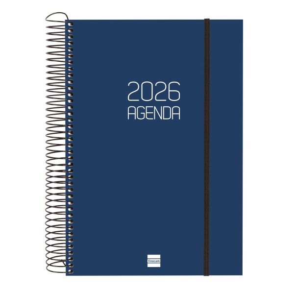 Finocam Opaque Agenda de Espiral en Catalan – Anual 2026 – Tapa Ligera – Cierre con Goma Elastica – Formato E11 – 175x29x242mm – 1 Dia por Pagina – Color Azul
