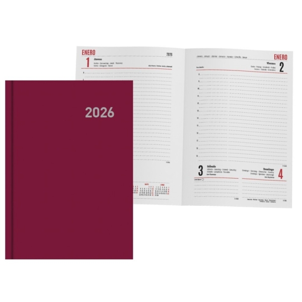 Ingraf Paris Agenda Anual – Dia Pagina – Viernes, Sabado y Domingo misma Pagina – Tamaño 15x21cm – Color Burdeos