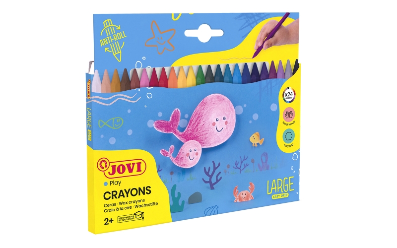 Jovi Large Easy Grip Pack de 24 Ceras Plasticas Hexagonales – Facil de Sacar Punta – No Mancha – Ideal para Manos Pequeñas – Colores Surtidos