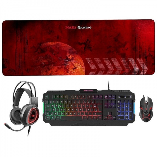 Mars Gaming MCPRGB2 Combo Gaming – Teclado RGB Rainbow – Raton 4000DPI RGB Flow – Auriculares RGB Flow – Alfombrilla XXL – Maxima compatibilidad – Color Varios
