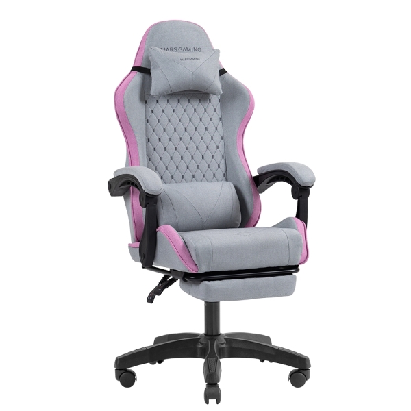 Mars Gaming MGC-X FABRIC Silla Gaming Ergonomica – Reposapies Extensible – Cojines Lumbar y Cervical – 660x540x1250mm – Tejido Transpirable – Color Gris y Rosa