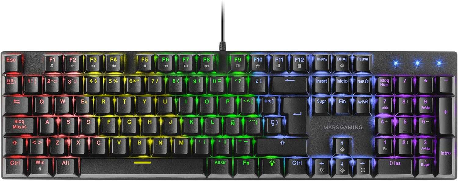 Mars Gaming Teclado Mecanico RGB MK422 – Tecnologia Antipolvo – Efectos de Iluminacion Rainbow – Teclas Ultra-resistentes – Funciones Multimedia y Modo Juego – PR de 1000Hz – Anti-Ghosting Avanzado – Compatibilidad Multiplataforma – Color Negro