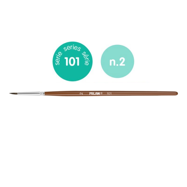 Milan 101 Pack de 12 Pinceles Escolares Redondos Numero 2 – Bolsa con Colgador – Pelo de Cabra y Sintetico – Color Madera Oscuro