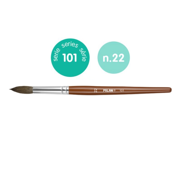 Milan 101 Pack de 3 Pinceles Escolares Redondos Numero 22 – Bolsa con Colgador – Pelo de Cabra y Sintetico – Color Madera Oscuro