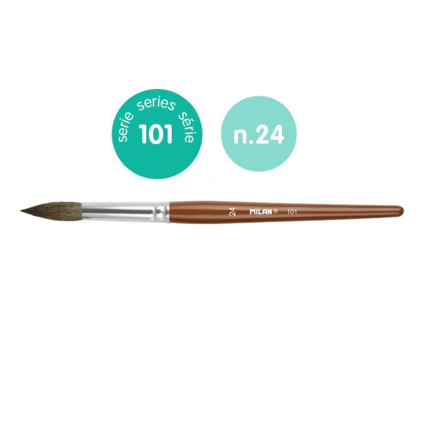 Milan 101 Pack de 3 Pinceles Escolares Redondos Numero 24 – Bolsa con Colgador – Pelo de Cabra y Sintetico – Color Madera Oscuro