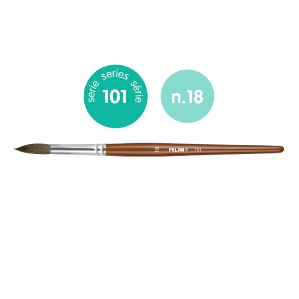 Milan 101 Pack de 6 Pinceles Escolares Redondos Numero 18 – Bolsa con Colgador – Pelo de Cabra y Sintetico – Color Madera Oscuro